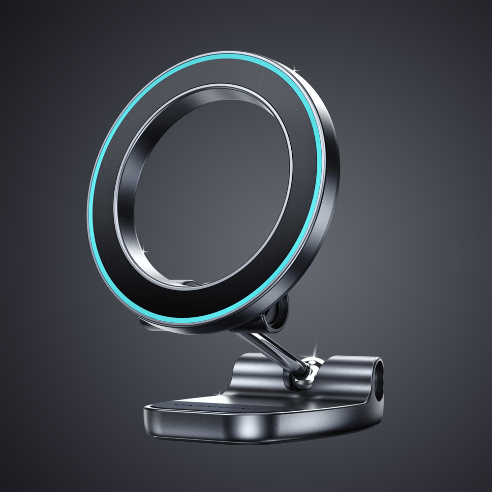 The F4 MagSafe Adjustable Mount is a full-metal, fully adjustable mount for iPhone users. It locks securely, adjusts easily, and features a phosphorescent ring that glows in the dark.